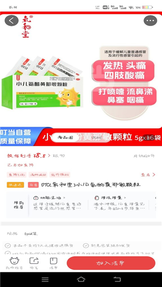 4、在详情页面中可以查看药品的信息,确认无误之后点击加入清单,之后结账即可