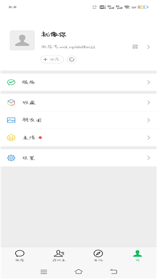 5、在我的页面中,这里有服务,收藏,表情,设置等功能