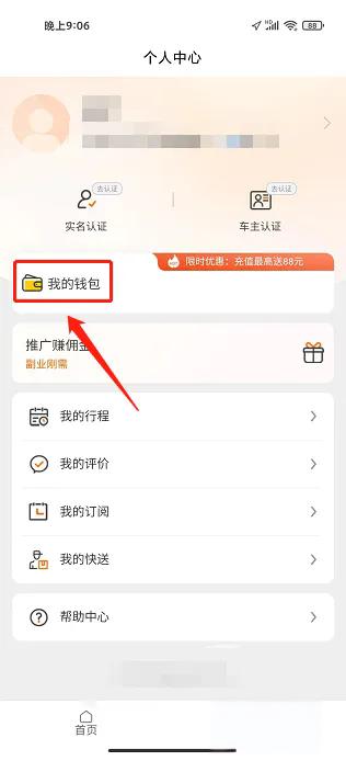 2、来到个人中心页面,接着点我的钱包这个选项。