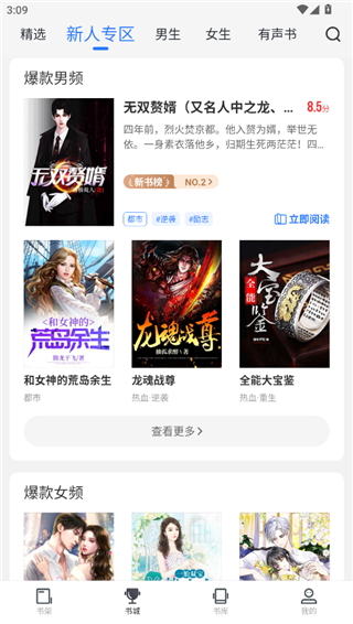 1、首先进入书城,这里有着众多小说可以观看,找到想要缓存的小说