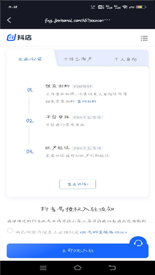 3、根据平台的入驻规则来填写相关信息与材料,完成之后点击入驻即可