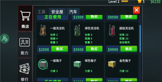 2、这里可以卡到有着丰富的工具可以购买,其中有洗洁机、海绵、箱子等,不同的工具有不同的效果