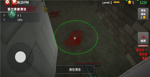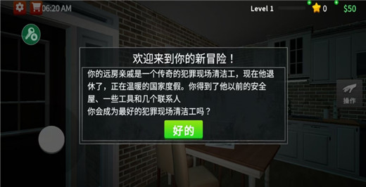 5、过完新手教程就迎接我们的第一个任务了,你需要使用工具清理房间内的血迹