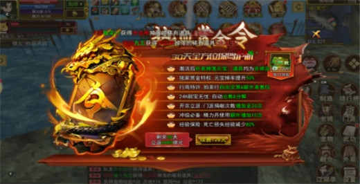 1、购买赏金令和侠名购买赏金令和侠名,能享受众多福利。比如打野元宝掉率增加 50%,让你刷怪获取元宝的效率大幅提升;还能解锁拍卖行,方便进行自由交易;拥有自动出售与分解功能,节省背包空间并确保资源及时转化为收益;门派捐献次数提升至 20 次,助力门派发展;精力丹使用额外增加 10 次,死亡损失经验减少 80%,天机楼挑战额外购买 3 次机会等。每日领取元宝:开启赏金令后,每天可以领取 1000 元宝,积少成多。
