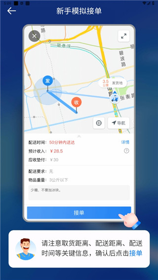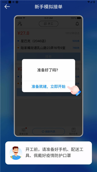 1、首先在接单之前要装备好手机、配送工具戴好口罩