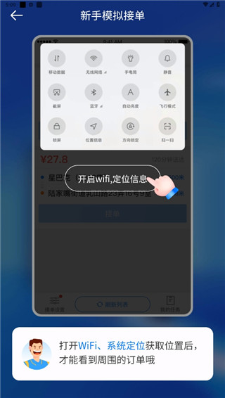 2、你需要打开定位系统,开启流量才可以看到附近的订单