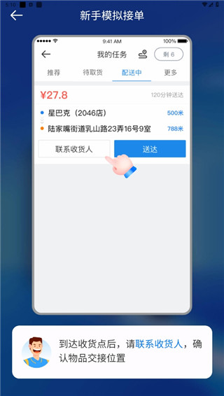 6、到达收货点后,联系收获人进行收获,确认物品交接