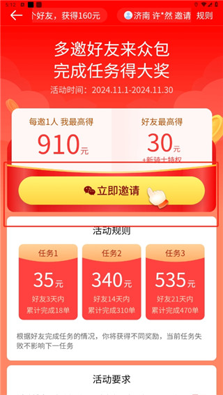 2、这里可以看都有着丰富的活动,点击邀请好友有将