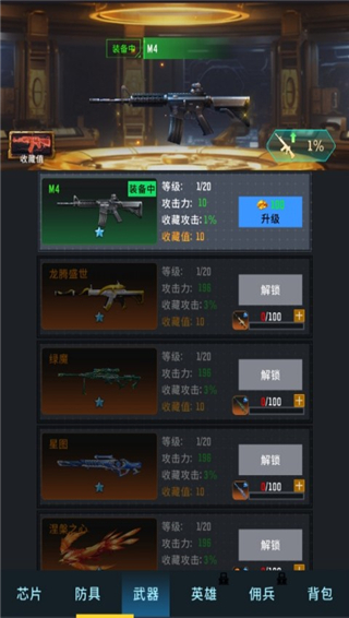 1、武器:在这里强化自身武器,大幅提升作战能力