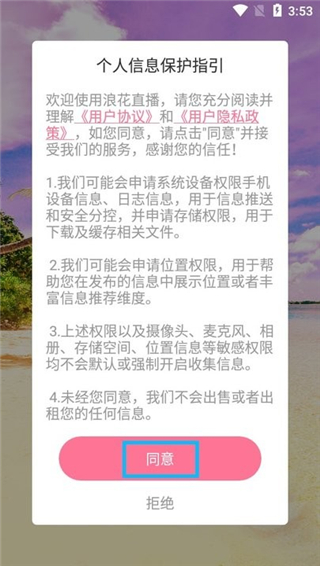 2、阅读完用户协议后,点击同意
