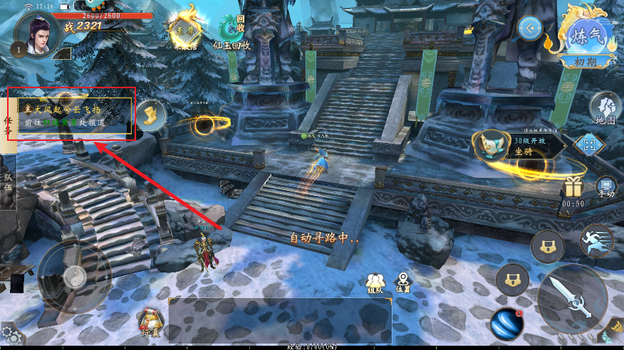2、点击左侧主线任务栏可以自动寻路完成接取任务。