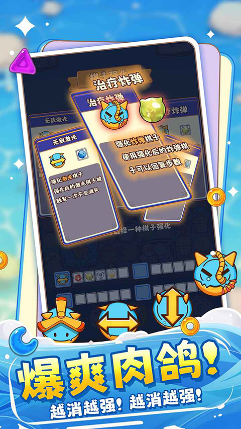 3、玩家通过消除方块,可以获得经验值,满了之后就可以选择道具专属技能,将道具进化提升,更好的消除格子。