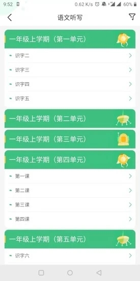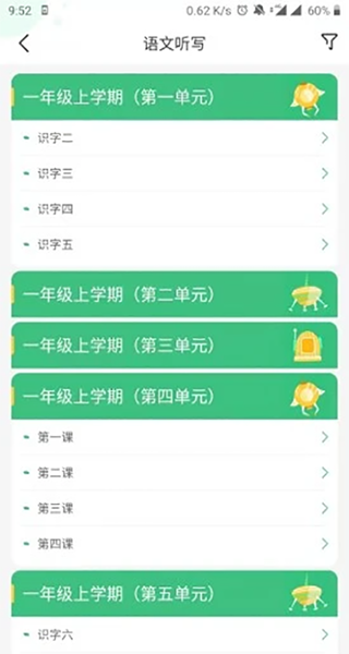 3、就拿语文听写来说吧,它里面的单元真的好多啊,够你学一阵子了。