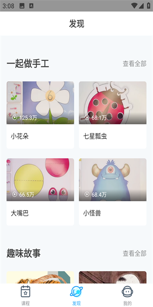3、往下翻你可以看到很多好玩的手工课程,还有有趣的故事和小剧场,特别有意思。