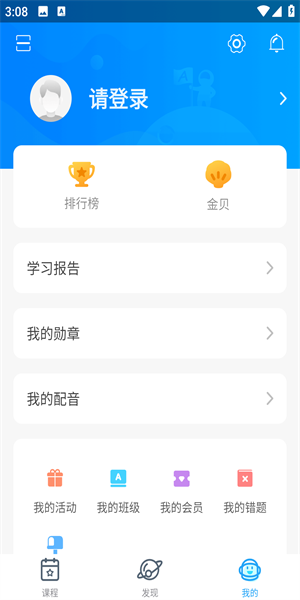 4、想去看看自己都学了啥?那就去我的界面,里面有你上的课程内容、配的音、参加的活动,还有你的班级信息,一目了然。