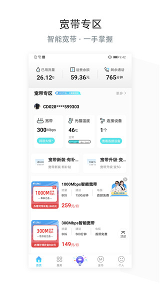 话费查询、流量查询、账单查询、交费充值、积分查询兑换、业务办理等。