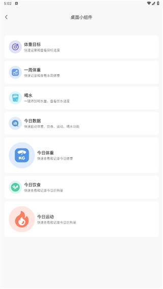 3、这里可以看到各种组件如喝水、今日运动、今日体重等,选择需要添加的点击进入
