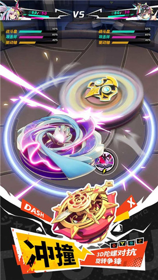 3、沉浸式的战斗体验:采用全3D的战斗盘和陀螺设计,真实还原陀螺对战的场景,可以体验到激烈的对战和精彩的技能释放。