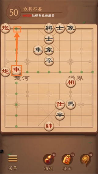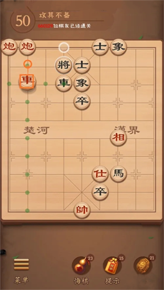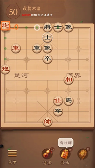 3、黑士向右下移动,这是使用左上角的红炮右移一格