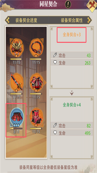 值得一提的是,当角色穿戴六件装备时,将会激活特殊的同星契合套装属性。这一机制从蓝色3星装备开始生效,如果是不同星级的,则按六件装备里最低星级生效属性,为角色带来额外的属性加成和战斗优势。这一设定不仅丰富了游戏的策略性,也让玩家在追求装备的过程中充满了挑战和乐趣。