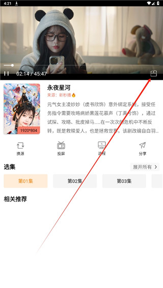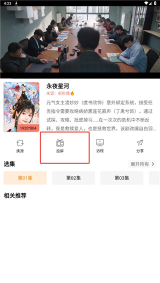 2、随后在影视介绍界面,点击投屏功能