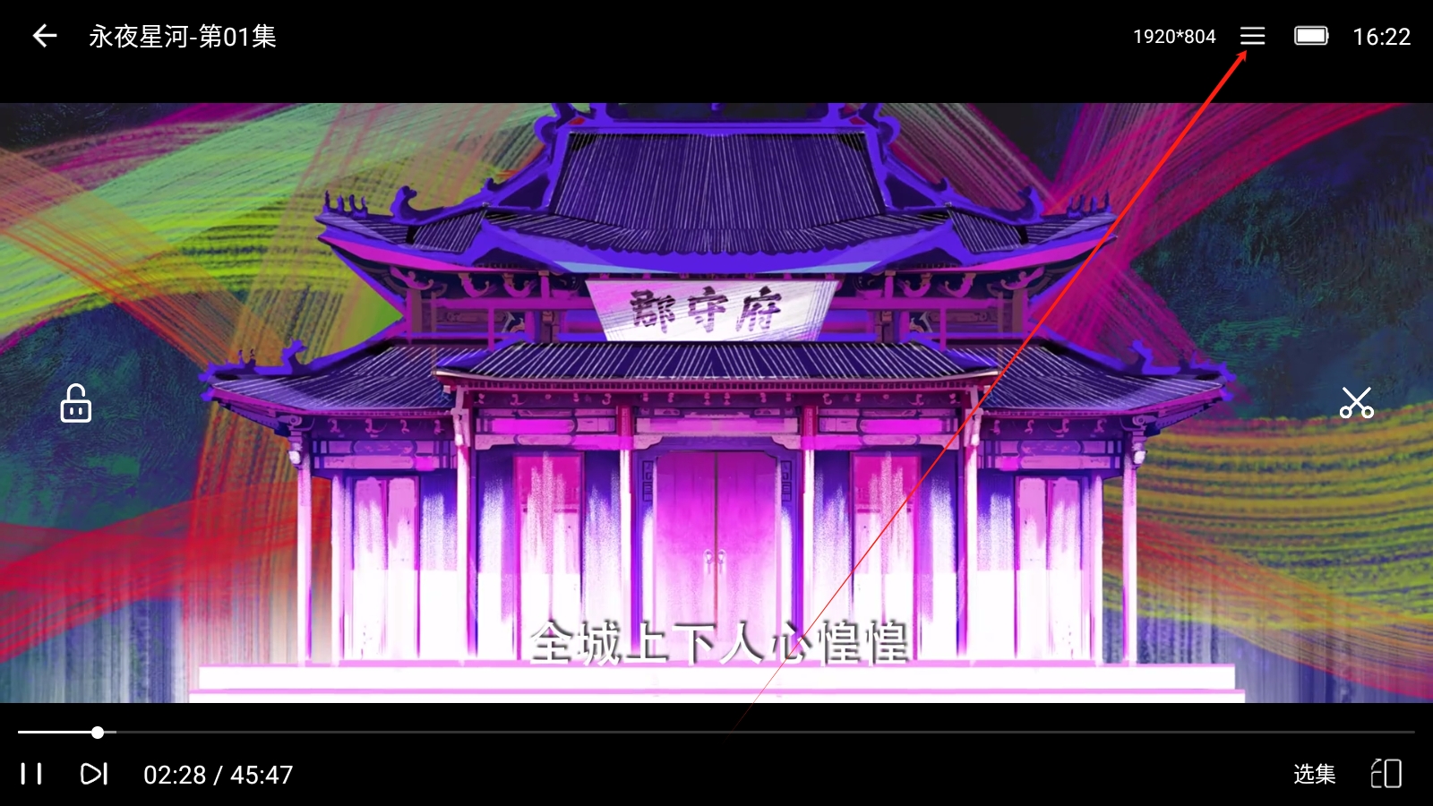 2、点击视频播放界面右下角,将屏幕以横版形式摆放