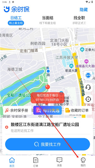 此外余时保app提供了附近找工作功能,使用该功能开启定位后你可以通过地图查看到自己所在位置附近的所有招聘信息,这样用户就可以快速的找到你自己更近的工作了。同时,用户还可以根据距离、薪资、工作类型进行选择,筛选出适合自己的工作岗位。如果你想找轻松的日结工作的话,那么这款软件非常适合你。