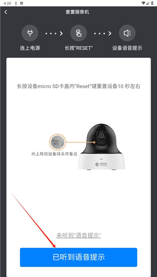 5、启动你的设备若是听到语音提示就点击下方的已听到