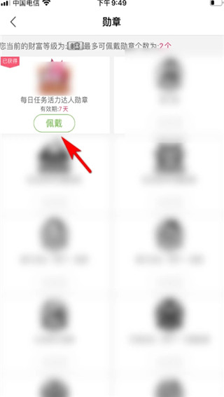 3、选择你需要佩戴的勋章,点击佩戴即可