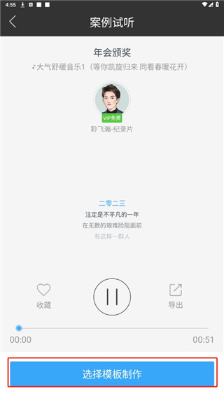 2、在这里可以试听配音员的声音,点击下方的选择模板制作