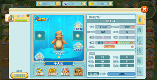 2、在宠物的培养界面可以看到宠物的各种信息,你可以升级强化宠物
