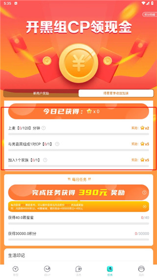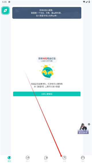 1、使用软件是可以赚钱的。打开软件,点击下方的任务