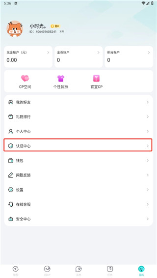 1、进入到app中,在我的假面内点击认证中心