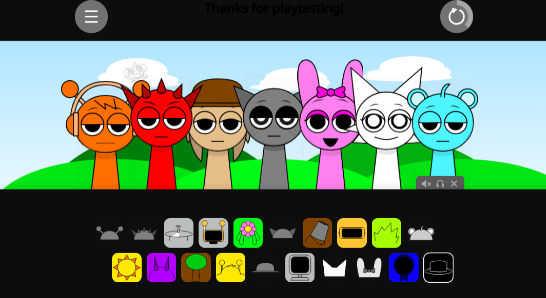 节奏盒子Sprunki罪人版模组里每个角色都像是一个个活泼的音符,你轻轻一点,它们就会做出有趣的动作,还会发出好听的声音。你还可以给角色换上不同的装扮,游戏里有好多漂亮的装饰品和道具等你来选择,你可以随心所欲地搭配,一边玩游戏一边还能沉浸在美妙的音乐世界里,真是太棒了!
