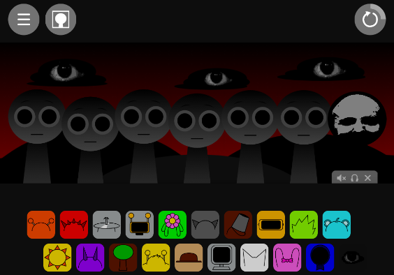 在节奏盒子sprunki抽象版中除了歌曲的创作外,你还能开启第二阶段,启动的方式也是非常简单,使用右下角的道具就能变成比较恐怖的黑暗风格,所有人物的模样都会变得抽象恐怖,可能有些小伙伴会说,角色发出的声音会不会非常阴森,其实不会的,只是音乐的风格会发生变化哦。