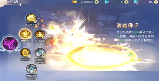 技能效果:在武器上加持诸明王之至尊-不动明王之力对目标周围造成3次150%基础伤害+150伤害。