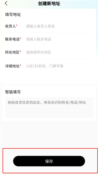 3、输入收货人、联系电话、所在地区、详细地址后,点击下方的保存就好了