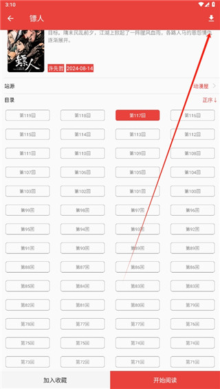 1、在漫画的介绍界面中,点击右上角的下载图标
