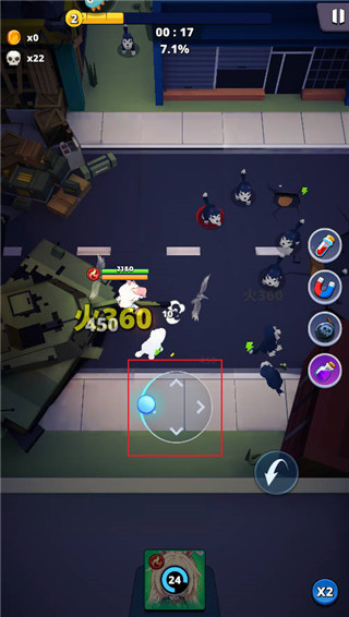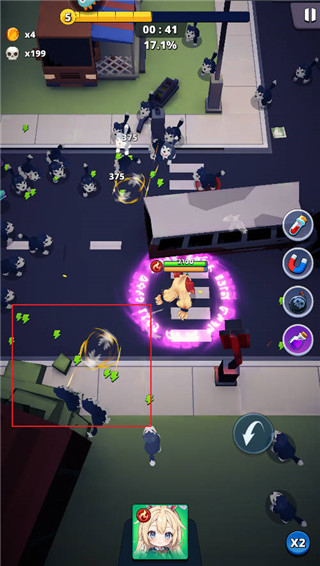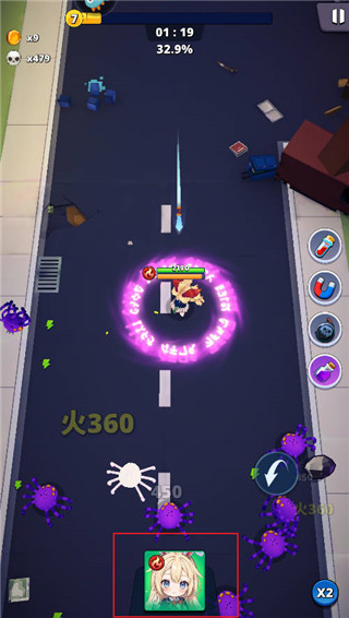 2、对局中,通过滑动屏幕来控制角色移动,并且角色会自动攻击敌人