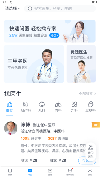 3、用户还可以通过搜索框的方式来找到你需要问诊的医生