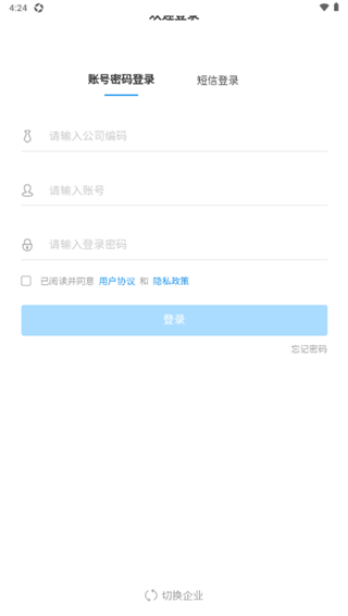 2、用户可以通过账号登录软件,公司编码、账号、密码