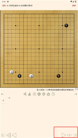 3、在观看界面中,可以通过快进后退等按键来控制下棋