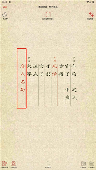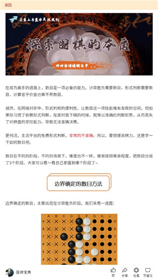 围棋宝典app官方版是一款围棋知识聚合、教学的综合性应用,其致力于通过智能技术帮助用户从小白逐渐提升到围棋大师的水平。软件提供了新手教学服务,它详细的给出了最基本的围棋知识,如基本规则、棋盘布局等,让从未下过围棋的用户可以轻轻松松的学会下棋。当学会了最基本的知识后,就可以通过人机对抗模式来对自己的实力进行考验了,其分为初级、中级、高级三种,小编建议大家先从初级开始对抗,等技术提高后再挑战后面的难度。