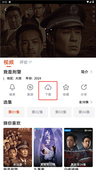2、点击进入观影界面后,再点击图中所指的下载图标