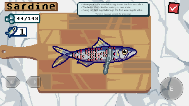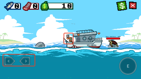 5、想要更好的钓鱼工具吗?那就去右上角的商店看看吧,可以买更锋利的刀、更结实的钓鱼线和更牢的钩子!