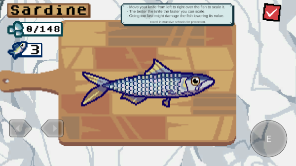 3、钓到的鱼得带去Sardine站处理一下,给鱼加上鱼鳞。鱼鳞加好了,就点右上角的按钮,搞定!