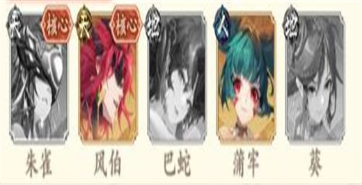 新手推荐1、阵容:朱雀、风伯、巴蛇、蒲牢、葵。