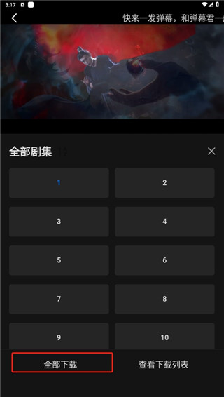 2、选择你需要下载的剧集,也可以选择全部下载