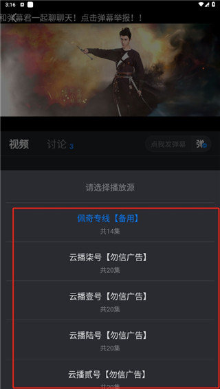 2、当出现加载不出来时,可以尝试切换不同的播放源重新加载