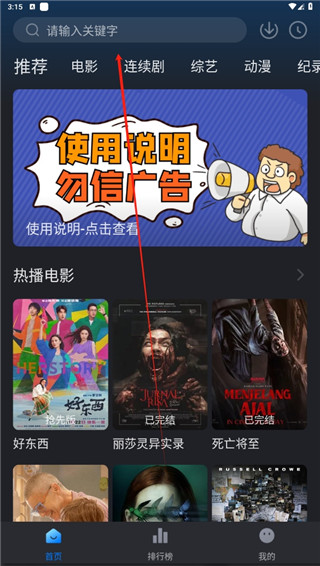 1、打开本站下载的软件,你可以通过上分的搜索功能查找影视